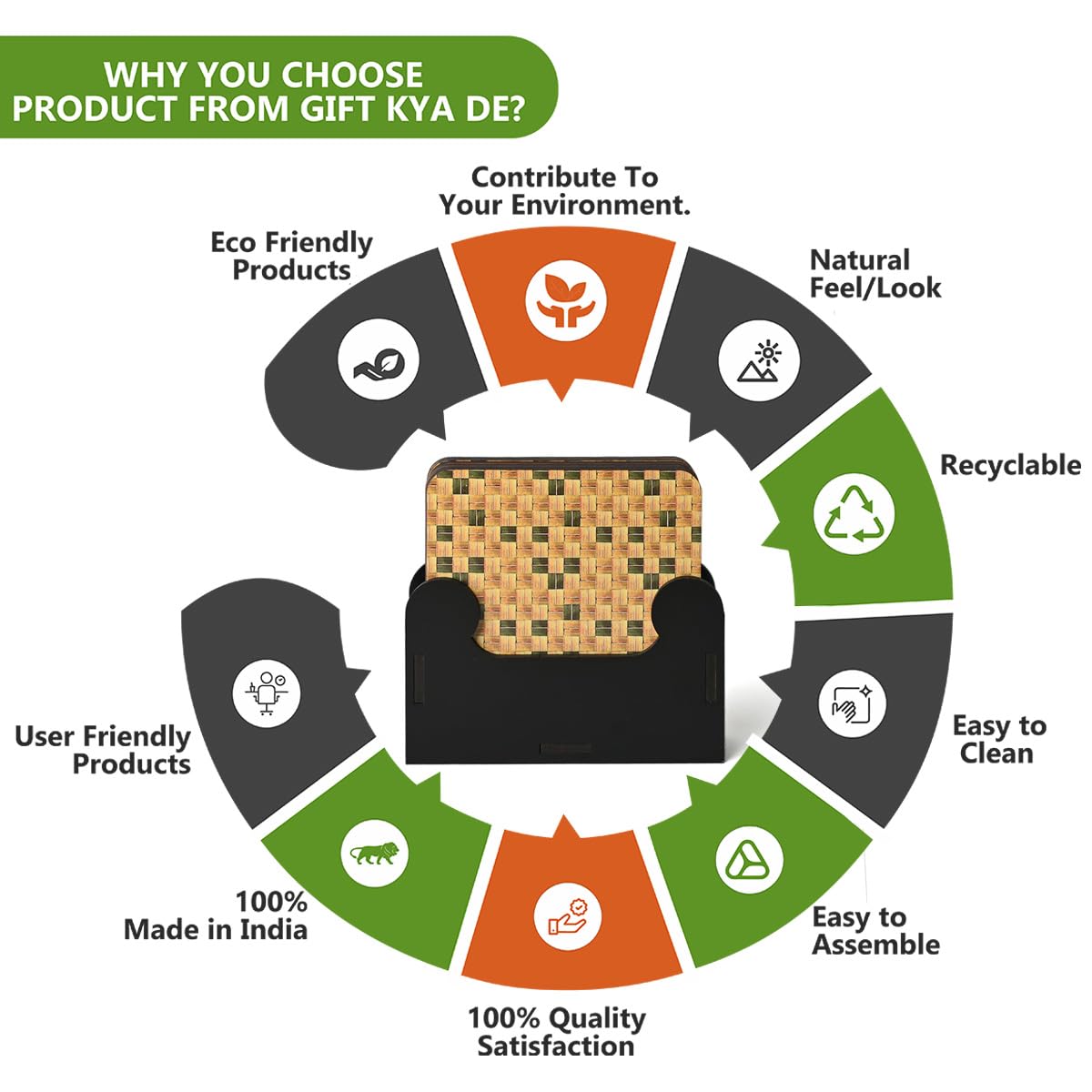Build Quality: The coasters stand is a very strong and sturdy build quality made up of 3.5 mm polished MDF engineering wood to last longer and is light in weight, made with a quality product, and very easy to clean. Strong quality, not easy to break.