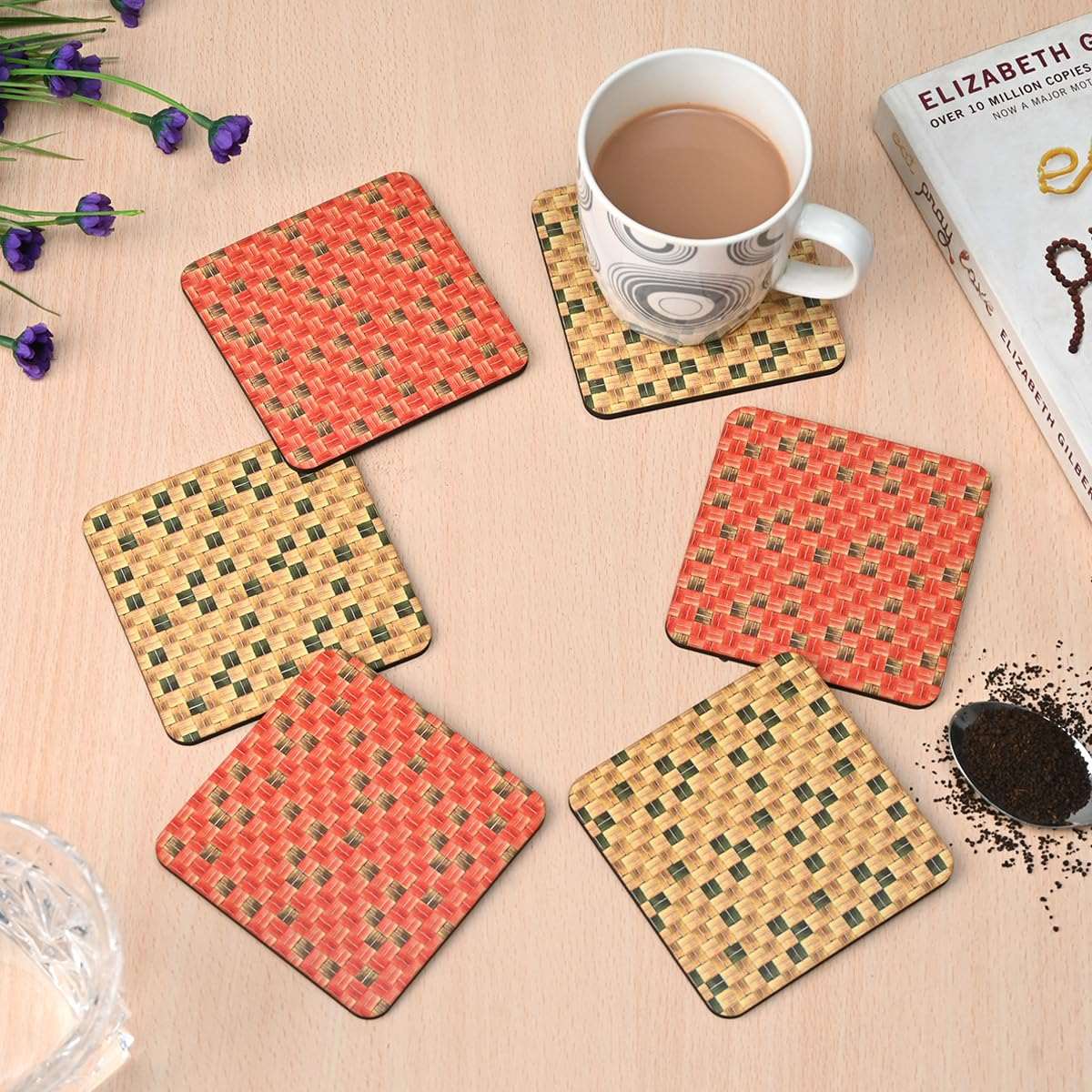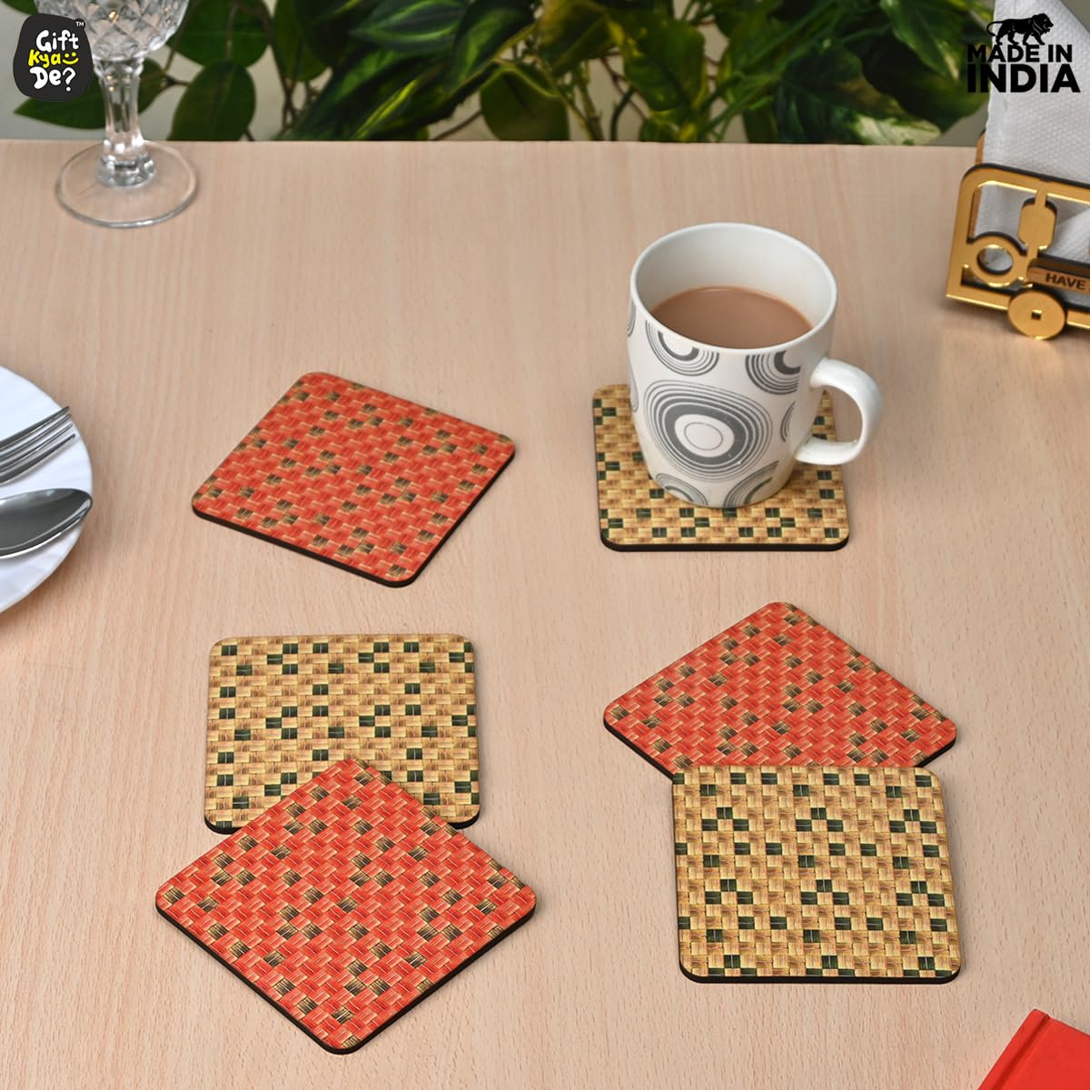 Wooden Decorative Coasters: This 6-piece unique wooden coaster adds vibrant vibes to any kitchen and dining room. The coaster with a Square eco-friendly is a perfect addition to your home.