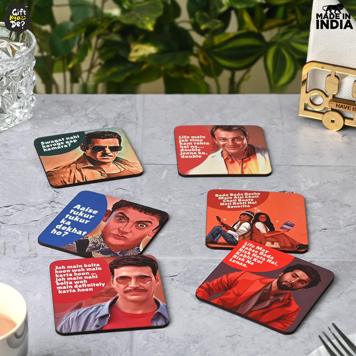 Themes Available: Bollywood Coaster, Uno Game Card Coaster, Playing Card Coaster, Indian Cricket Theme Jersey Coaster & Mat Chatai Coaster