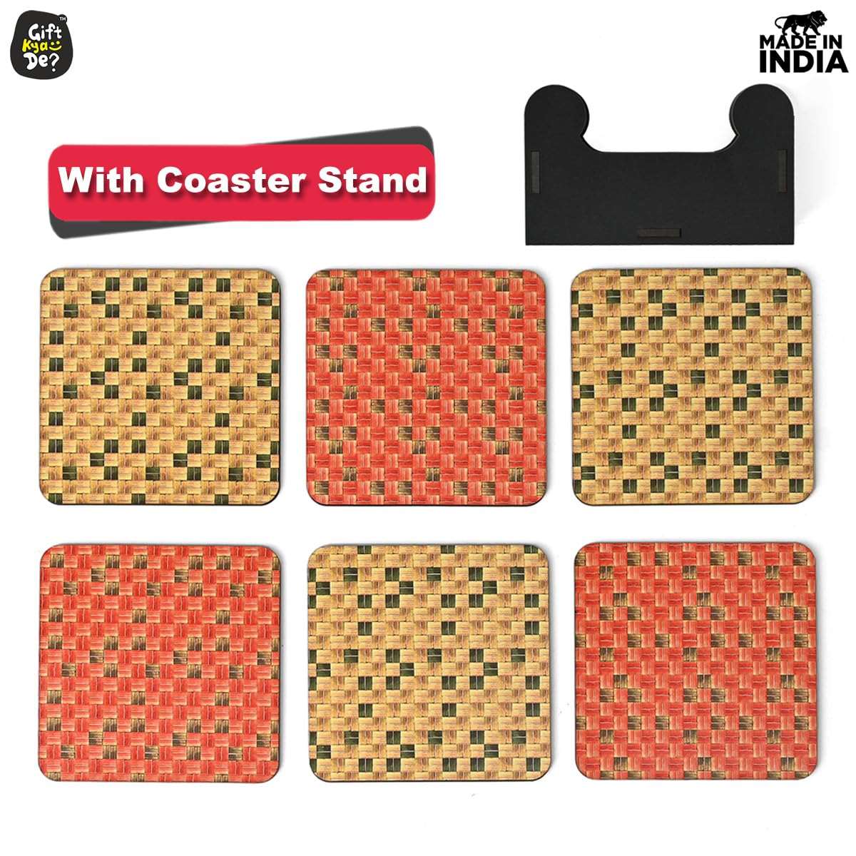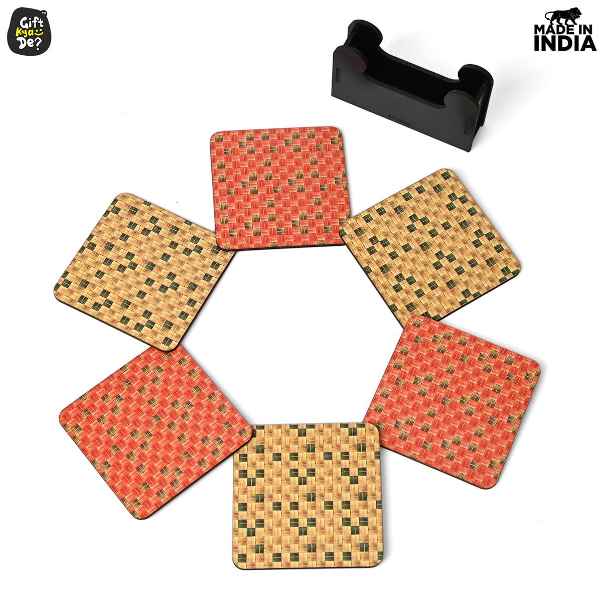 Square Coaster Set of 6 with Proper Coaster Stand | Designer Coaster Set fit for Tea Cups, Coffee Mugs and Glasses
