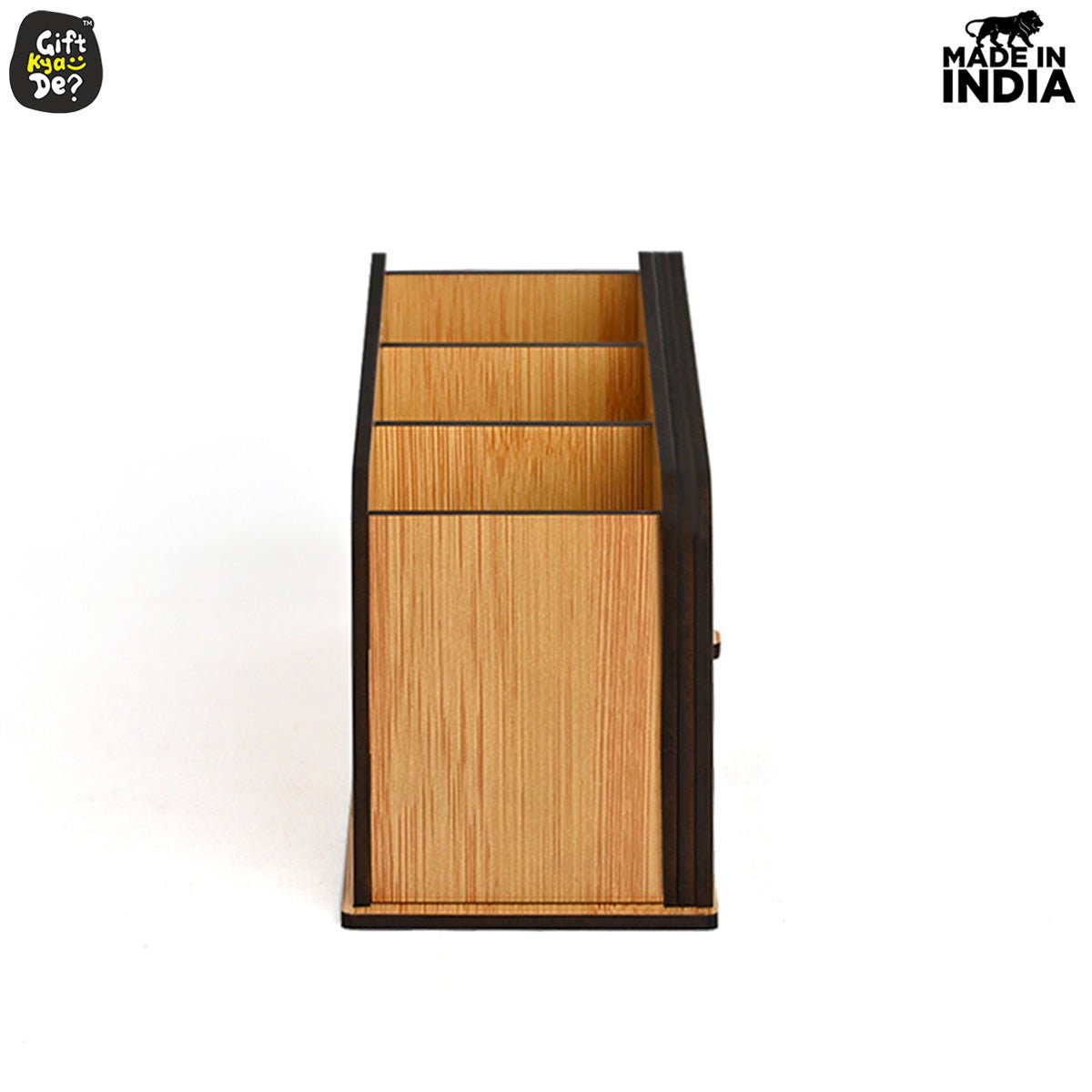 - 3 Compartment Desk Organizer With Calender is used to organize your personal stuff. It's fine Laser-cut finish and is used as a desk organizer for study table, office table For any person, he/she wants their things to seem to be well organized and beautiful, for that our product is what is meant for, It is the best for all desk. and stationery items organized for women and men.