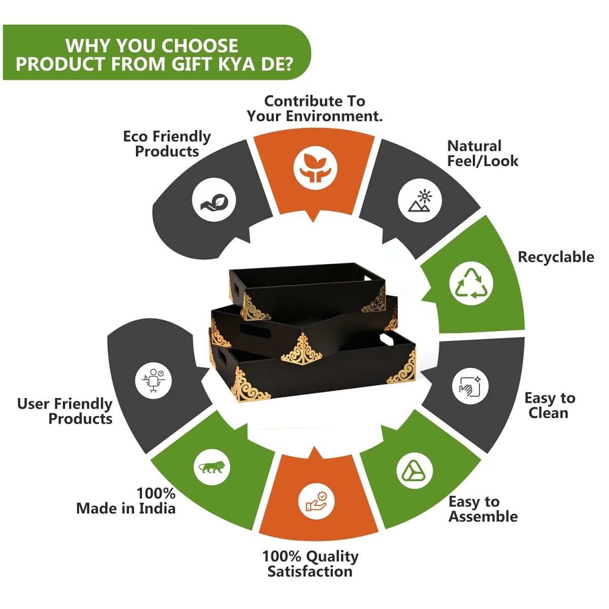 Elevate your home décor with our Wooden Tray Set of 3, crafted meticulously from high-quality bamboo and MDF. This set of trays offers a versatile solution for both decoration and practical use.