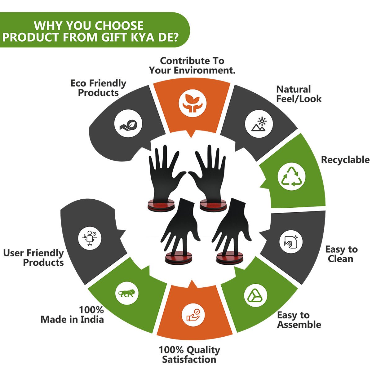 Build Quality:Quality can be greatly ensured. The Hand Shape Jewelry Stand is very strong and sturdy, made up of high-quality material that is firm and fragile much better than glass. With high-quality Engineered MDF Wood, it can match various styles of home decorations. Our products are 100% Made In India products. Our products are mainly handcrafted.