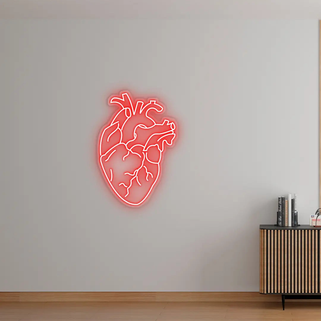 The Human Heart Neon Sign from Neon by FusionNeon is a bold and unique addition to any space. This artistic representation of a human heart in neon lights adds a creative, edgy vibe to your room, making it ideal for anyone who loves anatomy-inspired décor. This neon sign is the perfect addition to your space, making a bold statement whether you're a medical professional, an artist, or someone who adores quirky designs. Transform your environment with its vibrant colors and unique style!