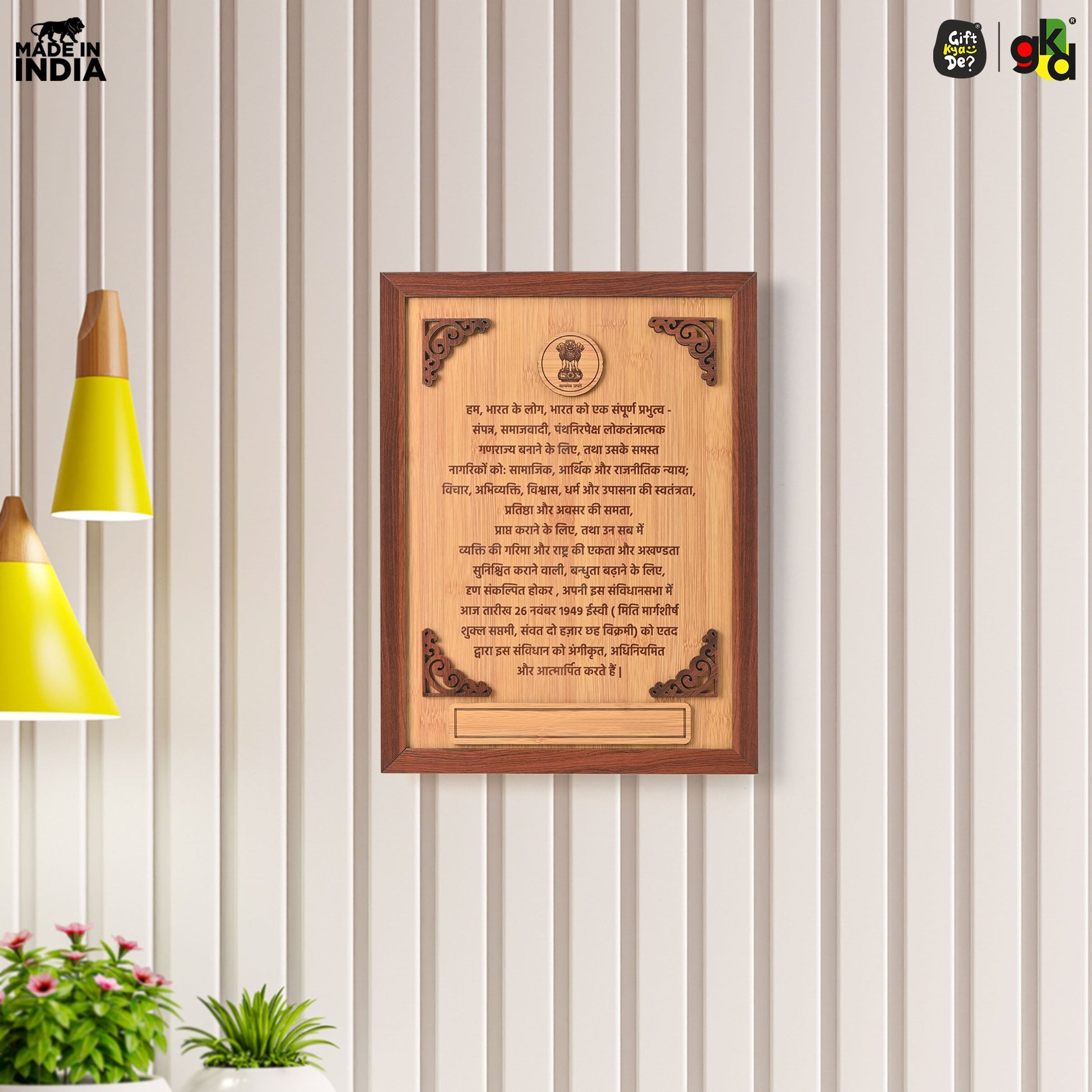 Indian Constitution in Hindi Printed Wooden Photo Frame | Premium Quality Frame | Unique Home Décor & Gift for Patriotic Enthusiasts