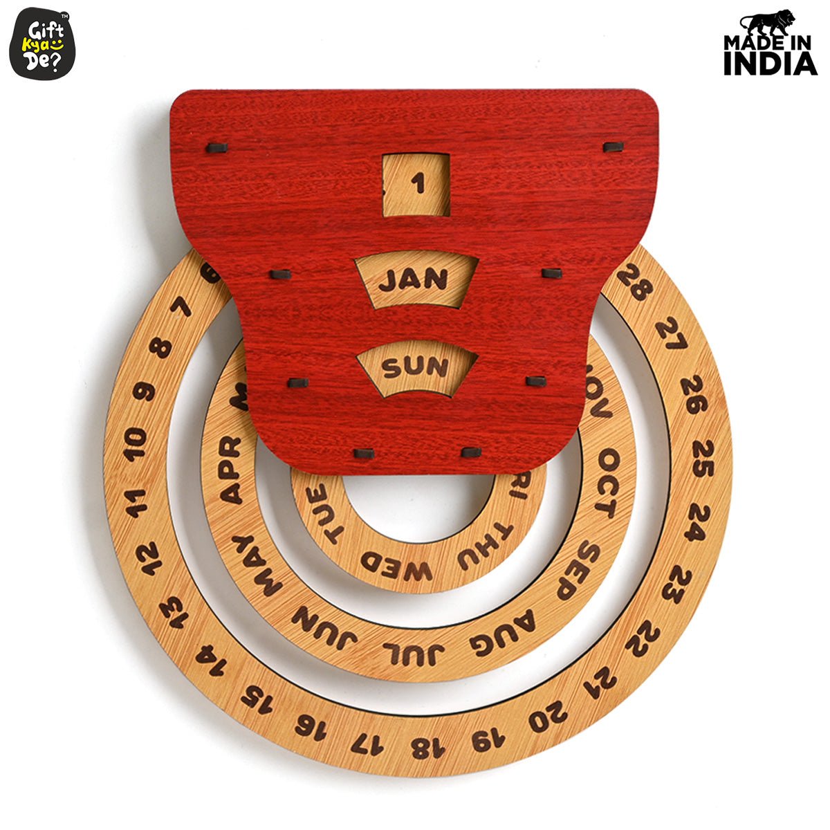 Infinite Circular Wall Calendar (Red Theme) | Wood Calendar & Test Tube Planter | New Year Gift