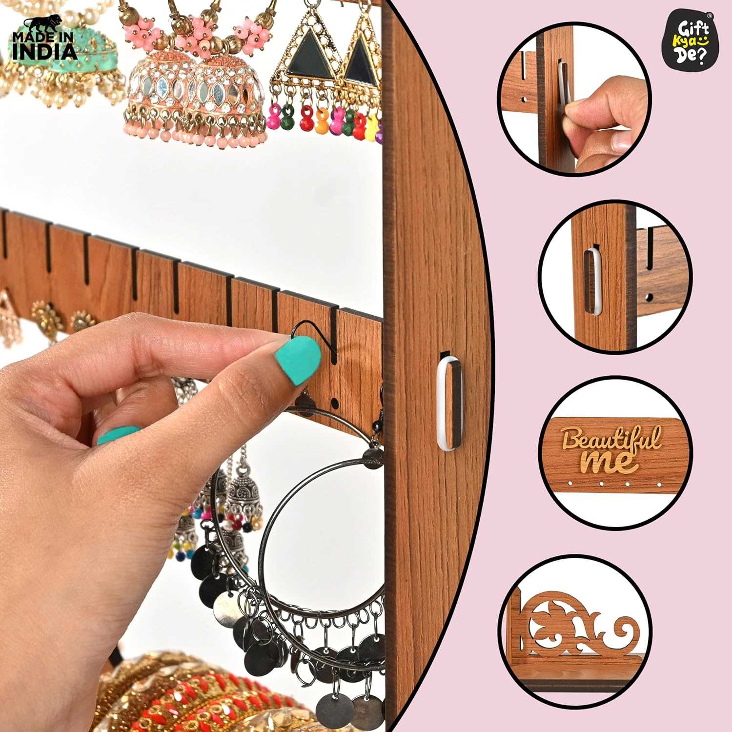 Ample Storage: Multiple hooks and compartments to accommodate various types of jewelry and bangles.