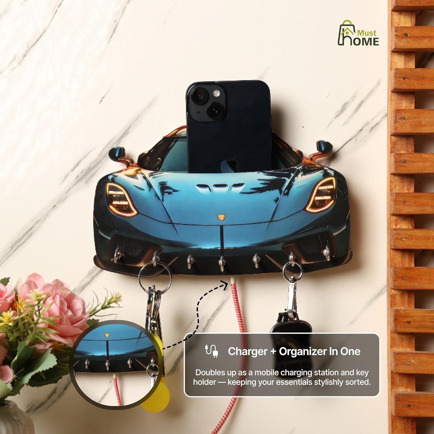 - Wooden Key Holder - Organise Your Keys, Wallets, Sunglasses and Masks, This beautifully crafted Key holder will catch eyes of your visitor, Perfect gift for House warming Its a perfect stand for Mobile charging.