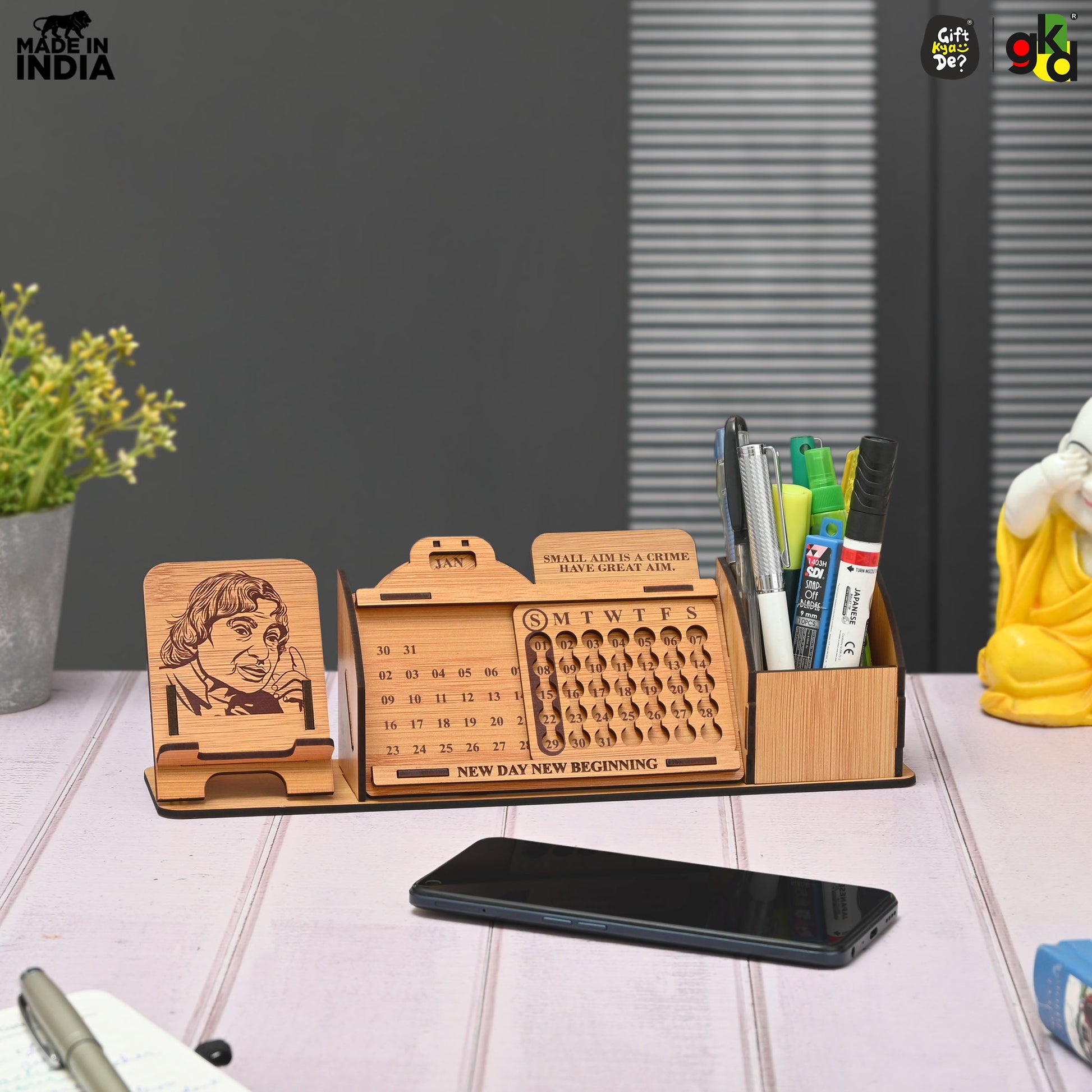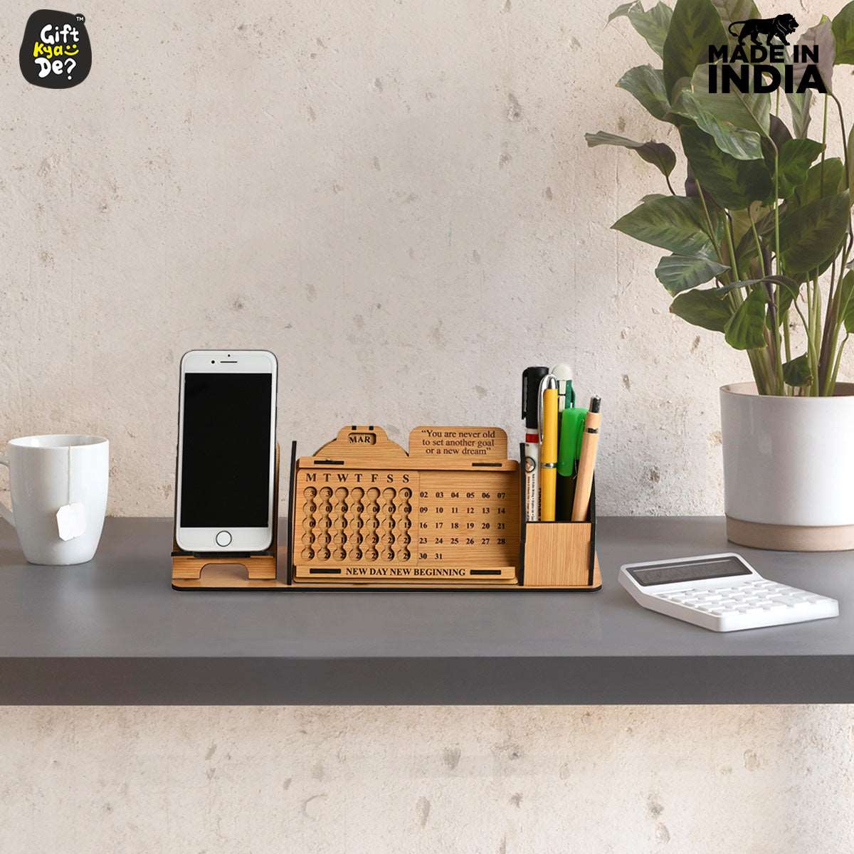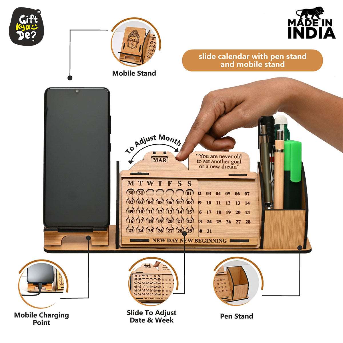 Lifetime Calendar With Desk Organizer and Mobile Stand | Desk Calendar | Mobile Accessories