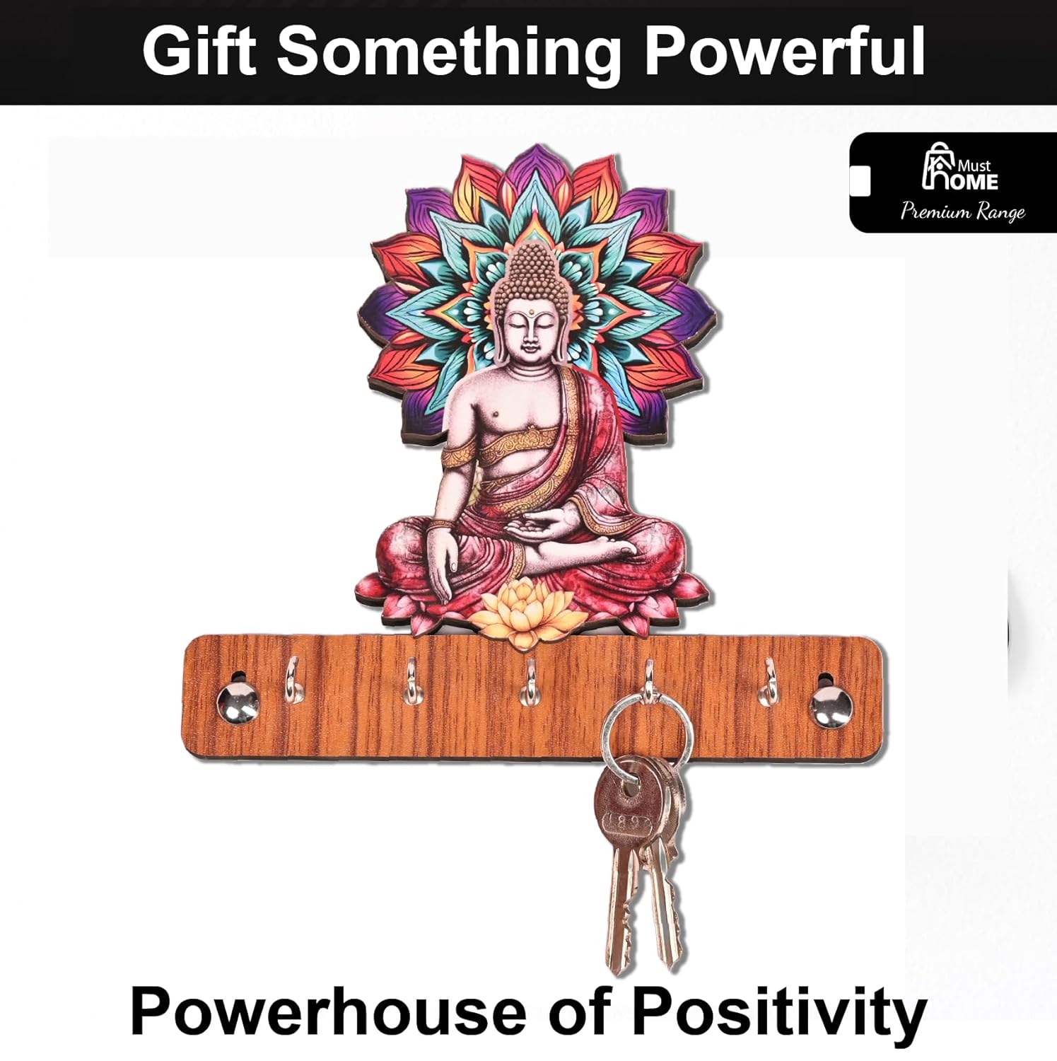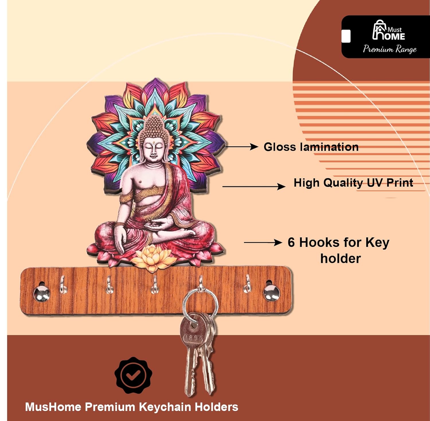 MustHome Key Holder for Home | Colorful Wooden Key Holder with 6 Hooks |18 by 18 cm