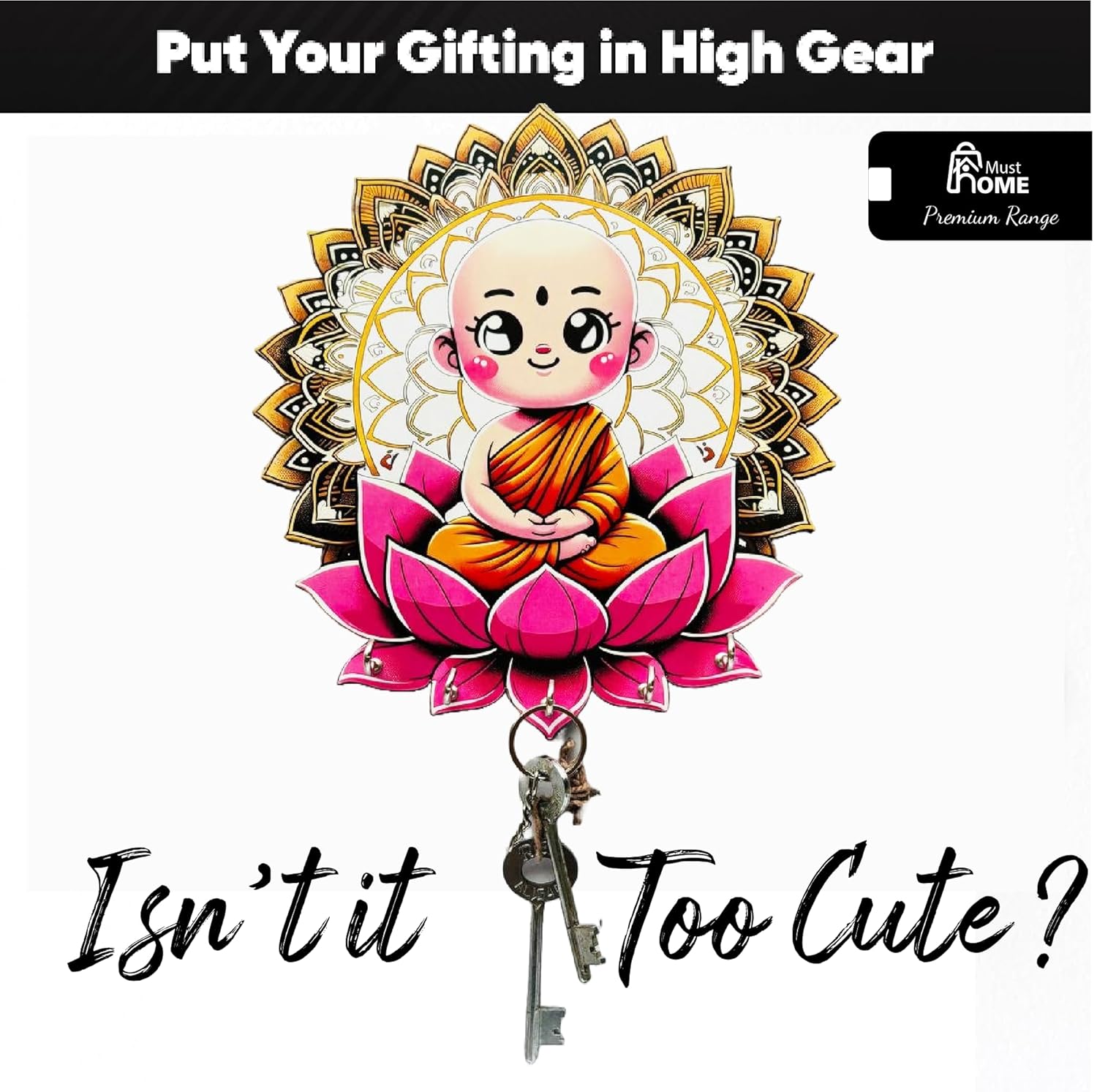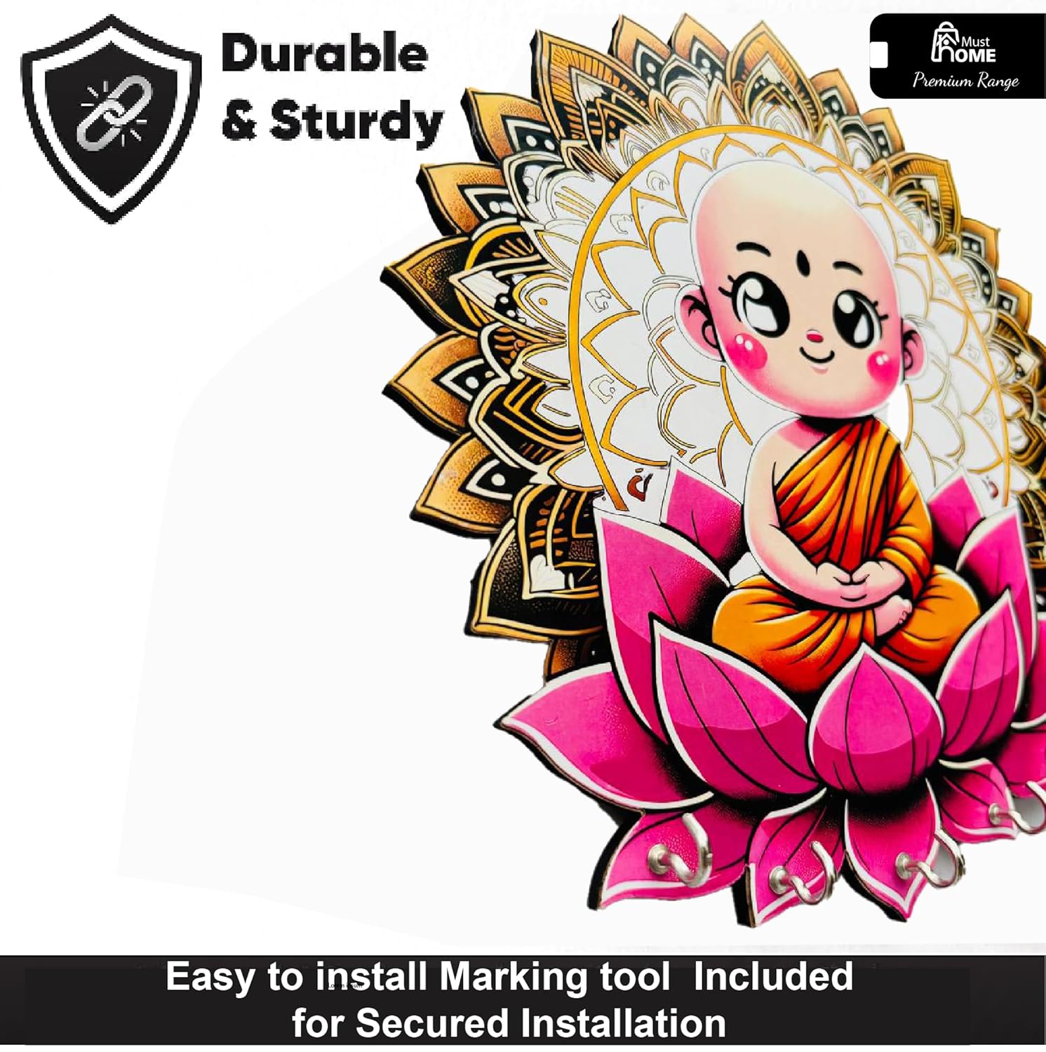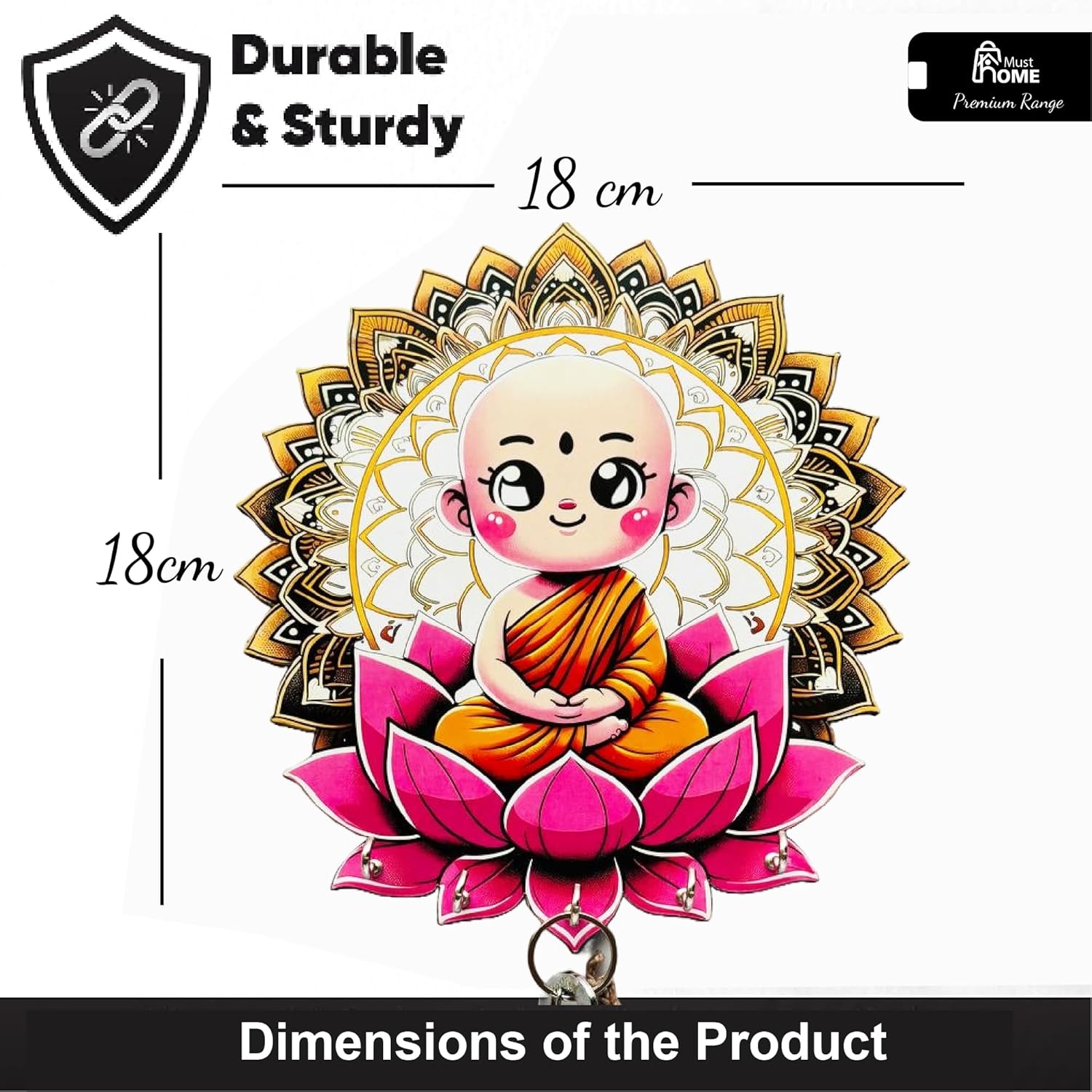 - Stylish Design: This premium key holder features a vibrant Buddha design printed on MDF wood, adding a colourful and decorative touch to your home decor.