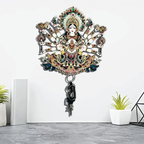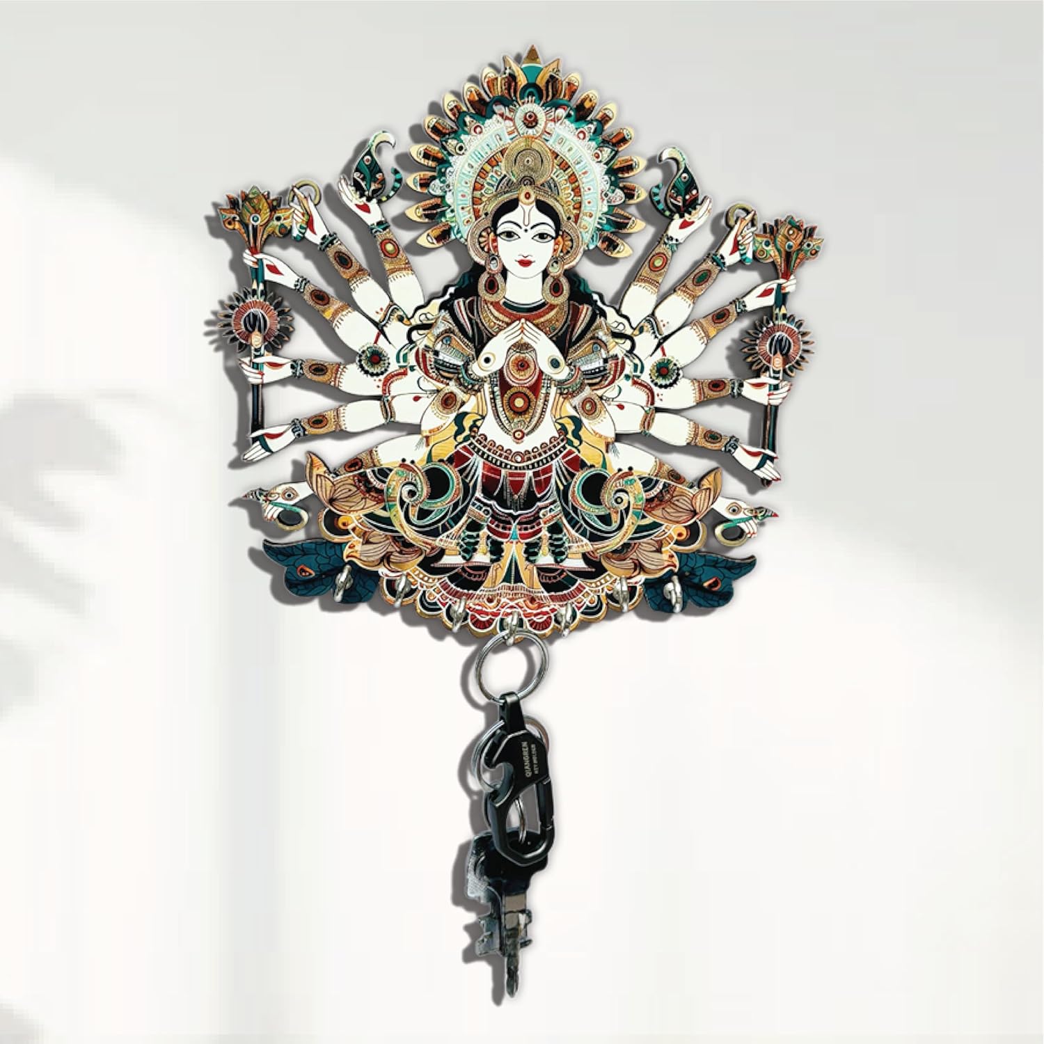 - Exquisite Design: This premium key holder showcases the captivating image of Goddess Durga, exquisitely printed using UV technology on high-quality wood.