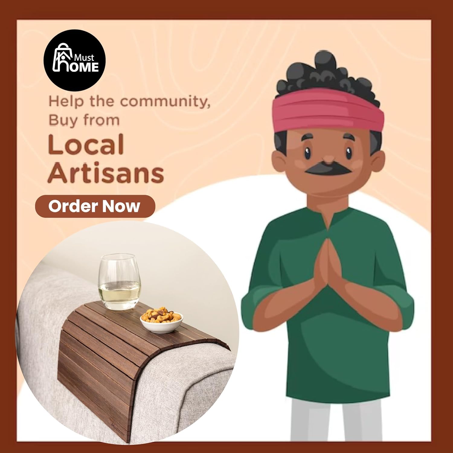 MustHome Wooden Tray | Sofa Armrest Tray |Flexible & Foldable | 50 X 30 Cm