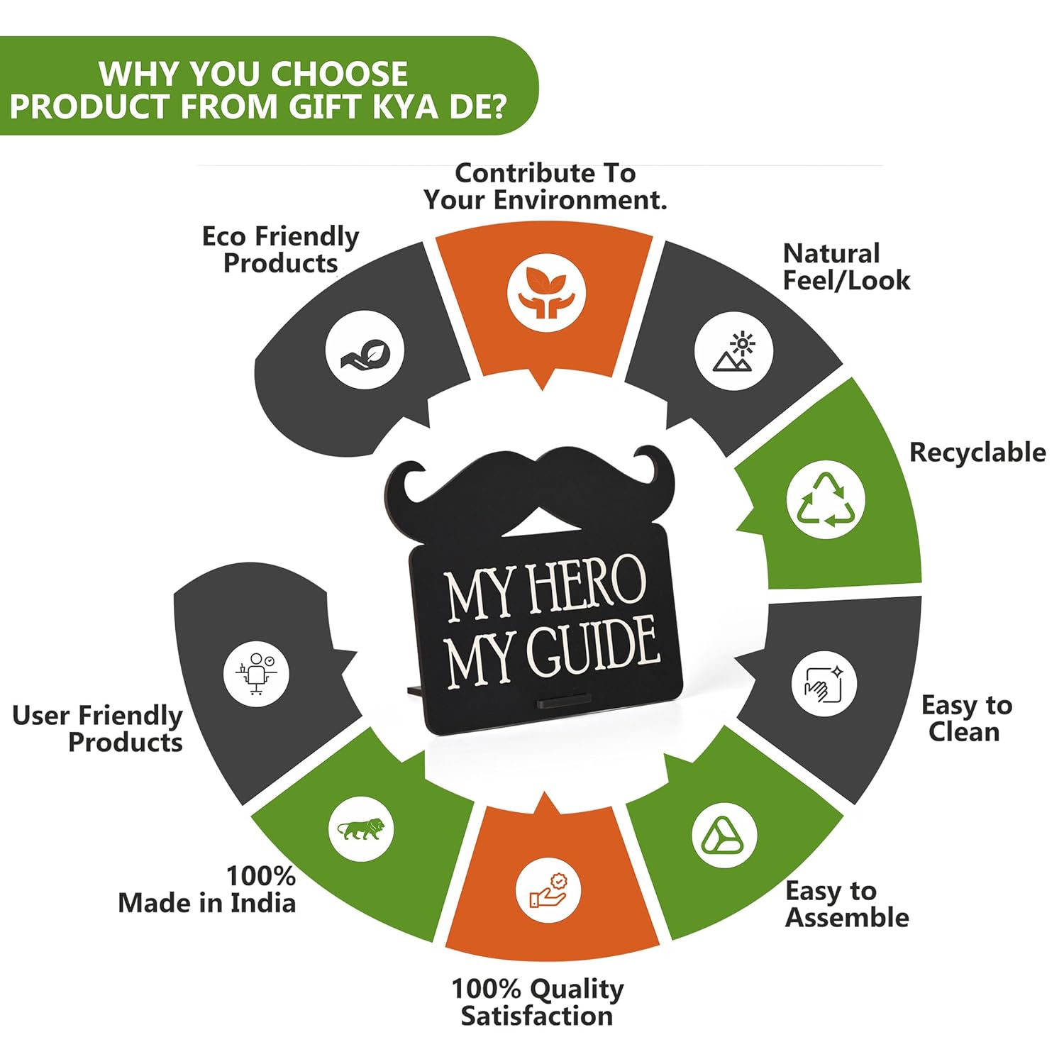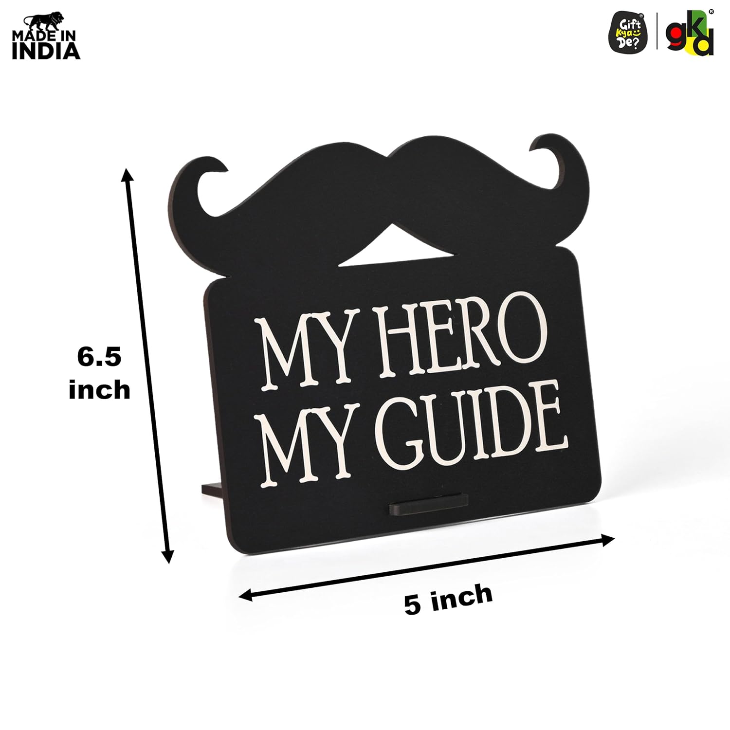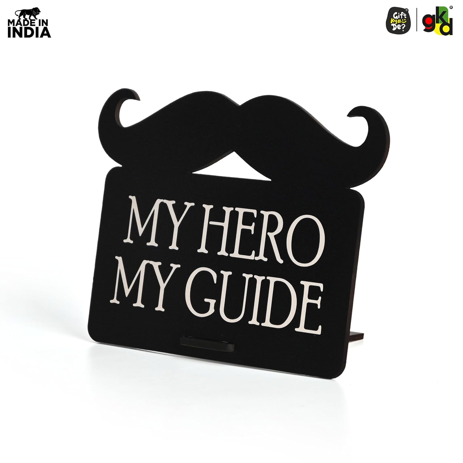 Celebrate the hero in your life with this beautifully crafted “My Hero My Guide” Wooden table top. Designed with a stylish moustache motif, this elegant black showpiece is more than just decor—it’s a heartfelt message of gratitude. Whether it's for your dad, mentor, or someone who’s been a guiding light, this table top showpiece gift makes a meaningful addition to any desk or shelf. Crafted from high-quality engineered wood, this durable piece includes a detachable stand, making it easy to display in offices, homes, or even retail counters. Its modern look paired with an emotional message makes it the perfect gift for Father's Day, birthdays, or just because. Let your hero know they’re appreciated—every single day.