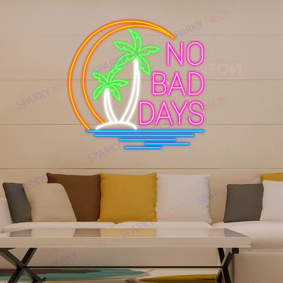 Add a dose of positivity to your space with the No Bad Days Neon Sign from Neon by FusionNeon. This sign features a simple yet uplifting message that sets the tone for a cheerful and optimistic atmosphere. Ideal for bedrooms, living rooms, offices, or creative studios, this sign serves as a reminder to stay upbeat and focus on the good moments. This versatile décor piece is great for reminding yourself and your guests to let go of negativity and focus on the bright side of life. Its modern typography and sleek style fit perfectly with any interior décor, making it an ideal choice for minimalist, bohemian, or contemporary themes.