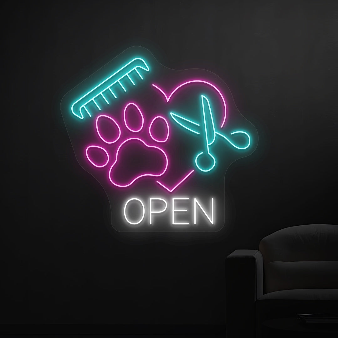Paws Open Pet Salon Neon Sign | Welcome Every Wag with a Glow