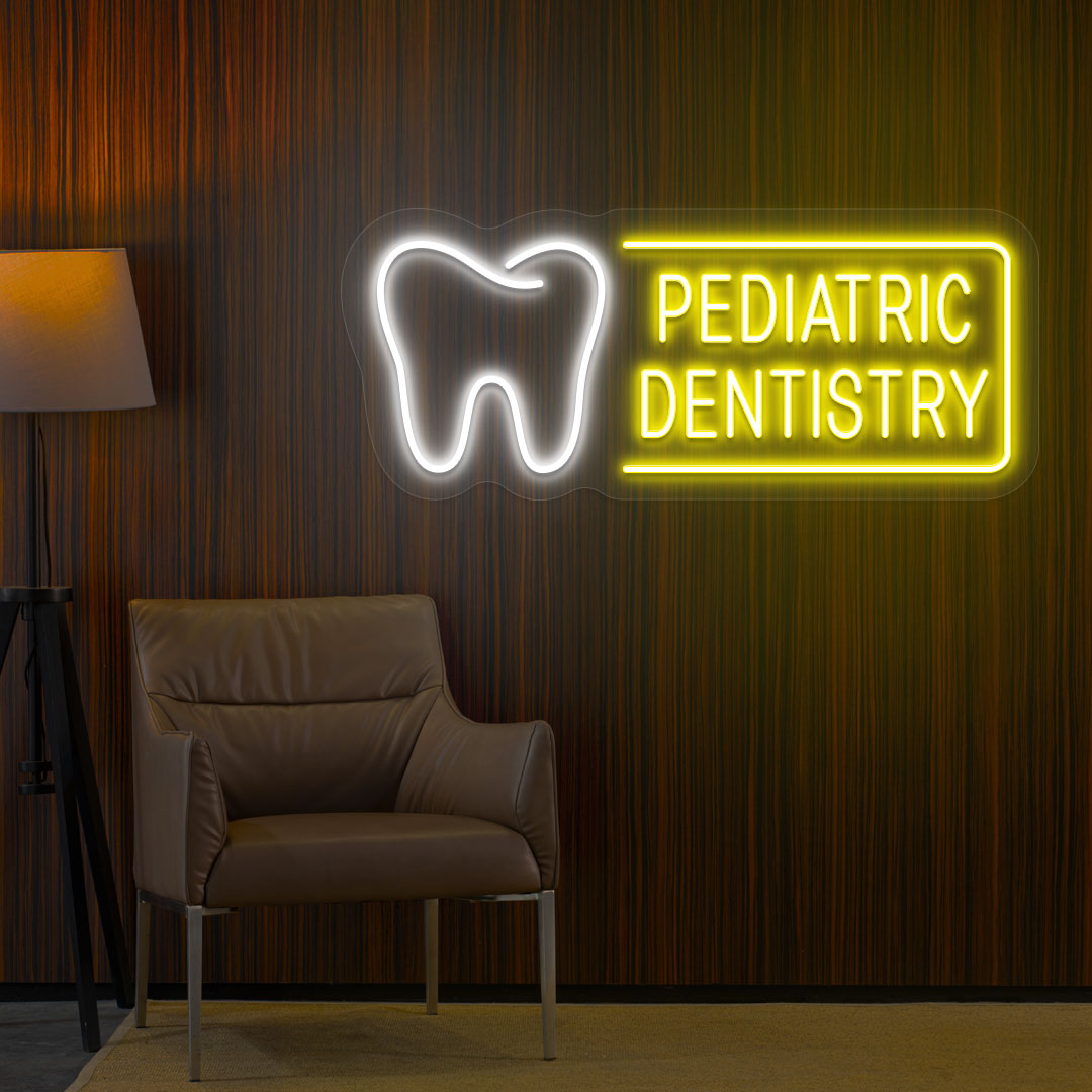 Welcome your young patients with a warm, cheerful glow using the Pediatric Dentistry Neon Sign. This kid-friendly LED sign is specially designed to make dental clinics feel less intimidating and more inviting. Its playful design and soft light help create a comforting environment that reassures both children and parents. Whether displayed in a waiting room, treatment area, or reception space, this sign adds charm and brightness to your clinic. It’s perfect for pediatric dentists looking to make a great first impression and create a memorable experience for every little visitor. Plus, the sign serves as a wonderful conversation starter and adds character to your dental brand.