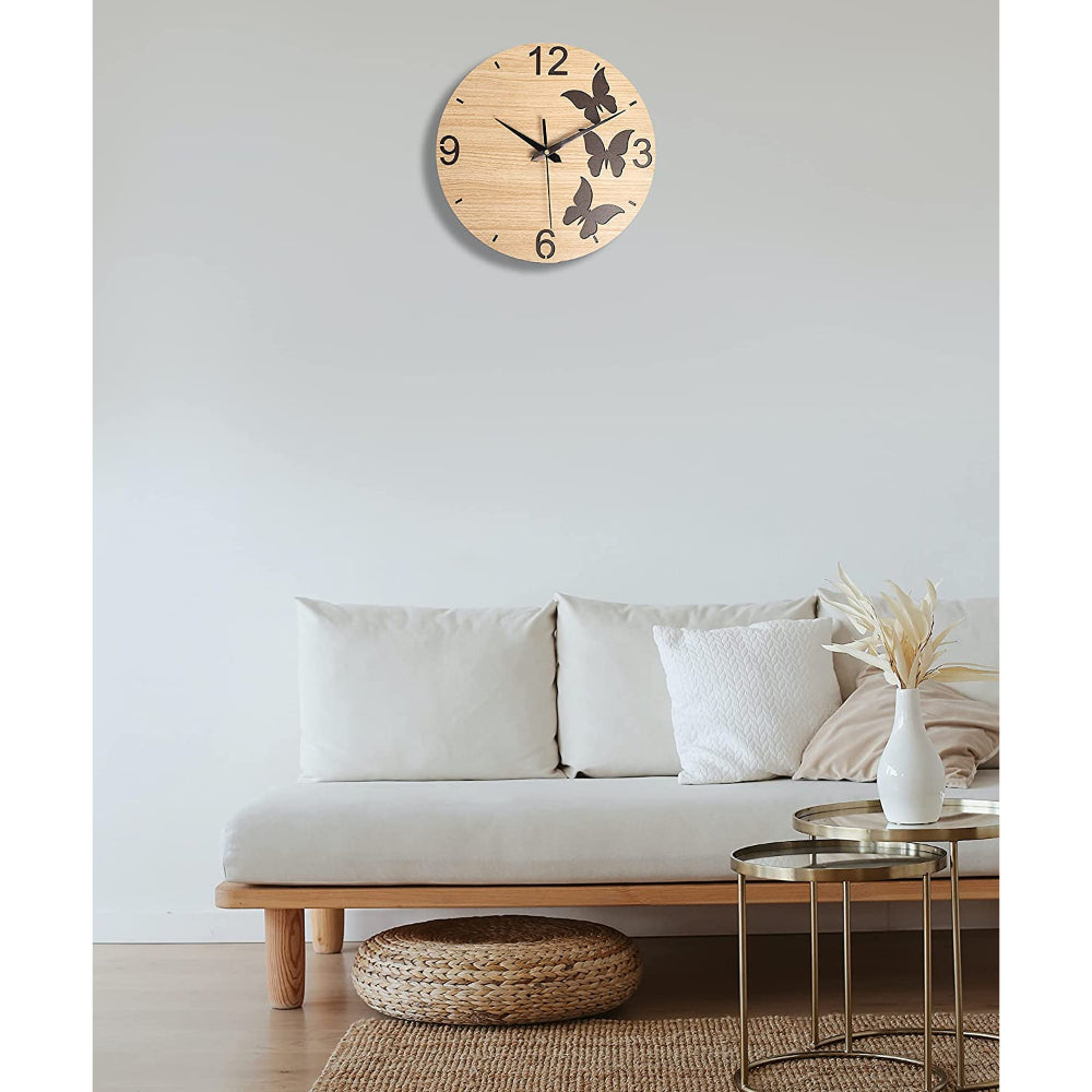 - STYLISH & FUNCTIONAL: Classic designer Fancy wooden wall clock face made of solid wood with and large Round with butterfly design. Which will be great interior design to living room, Home decor, kitchen, bedroom, hall, study, office, etc.