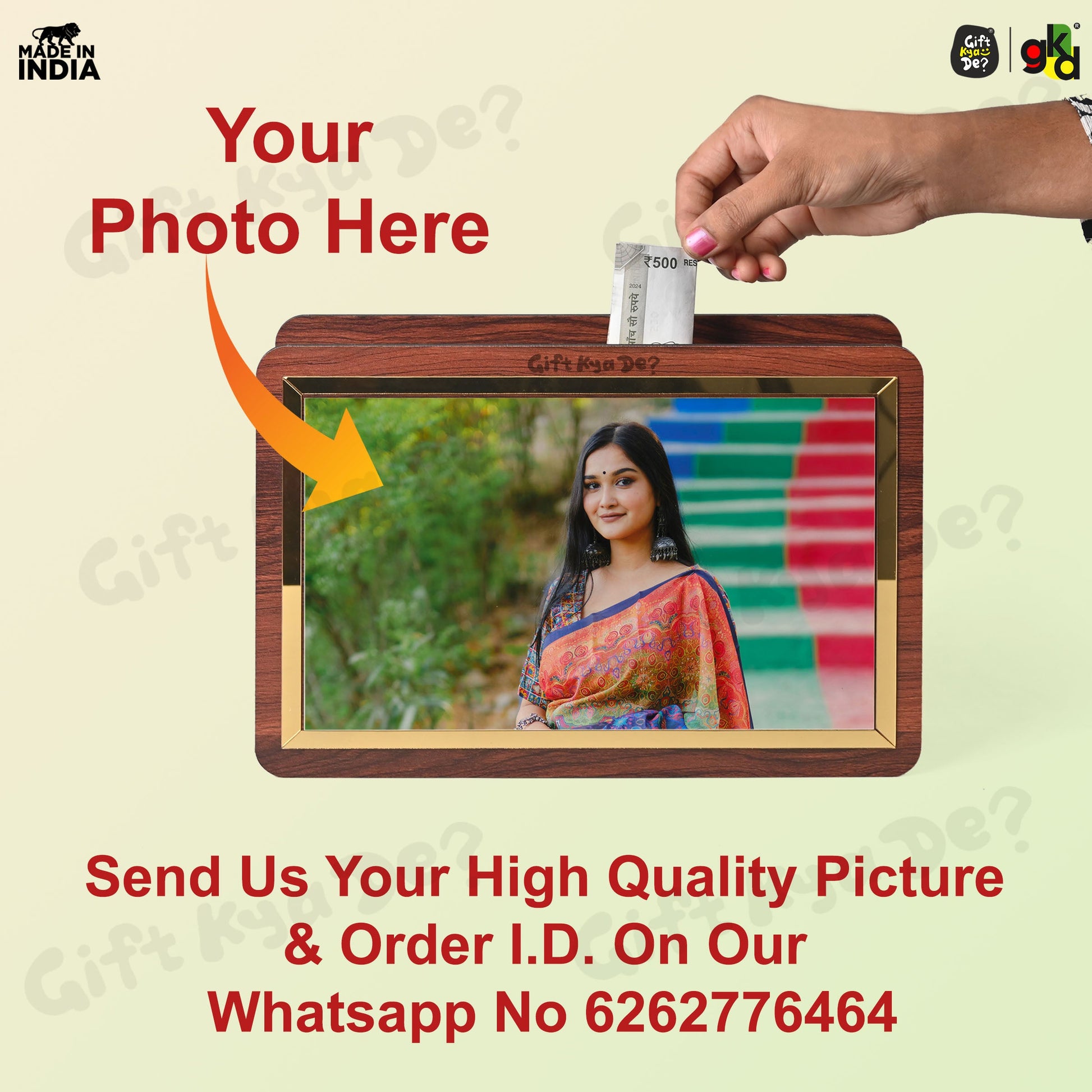 - Regular Customized Photo Piggy Bank – Personalize it with a photo for a special touch. Please send us your Photo & Order I.D on our WhatsApp No. +91-6262776464.