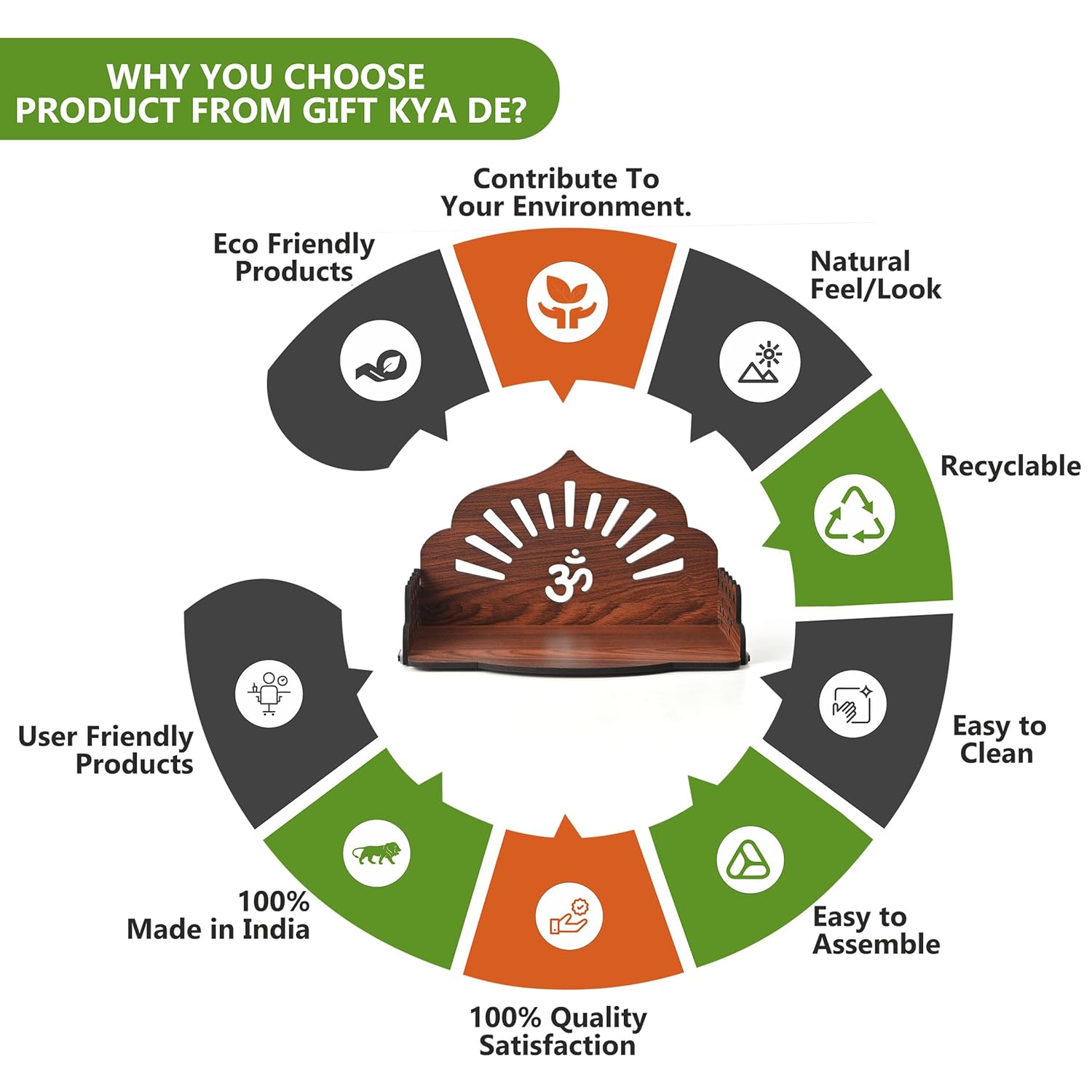 Create a peaceful pooja corner with this compact wooden temple for home or office. The OM design adds divine charm, while its tabletop and wall hanging flexibility makes it perfect for any room setup. A great choice for those seeking a small mandir shelf for Indian decor, especially in compact apartments or personal workstations.