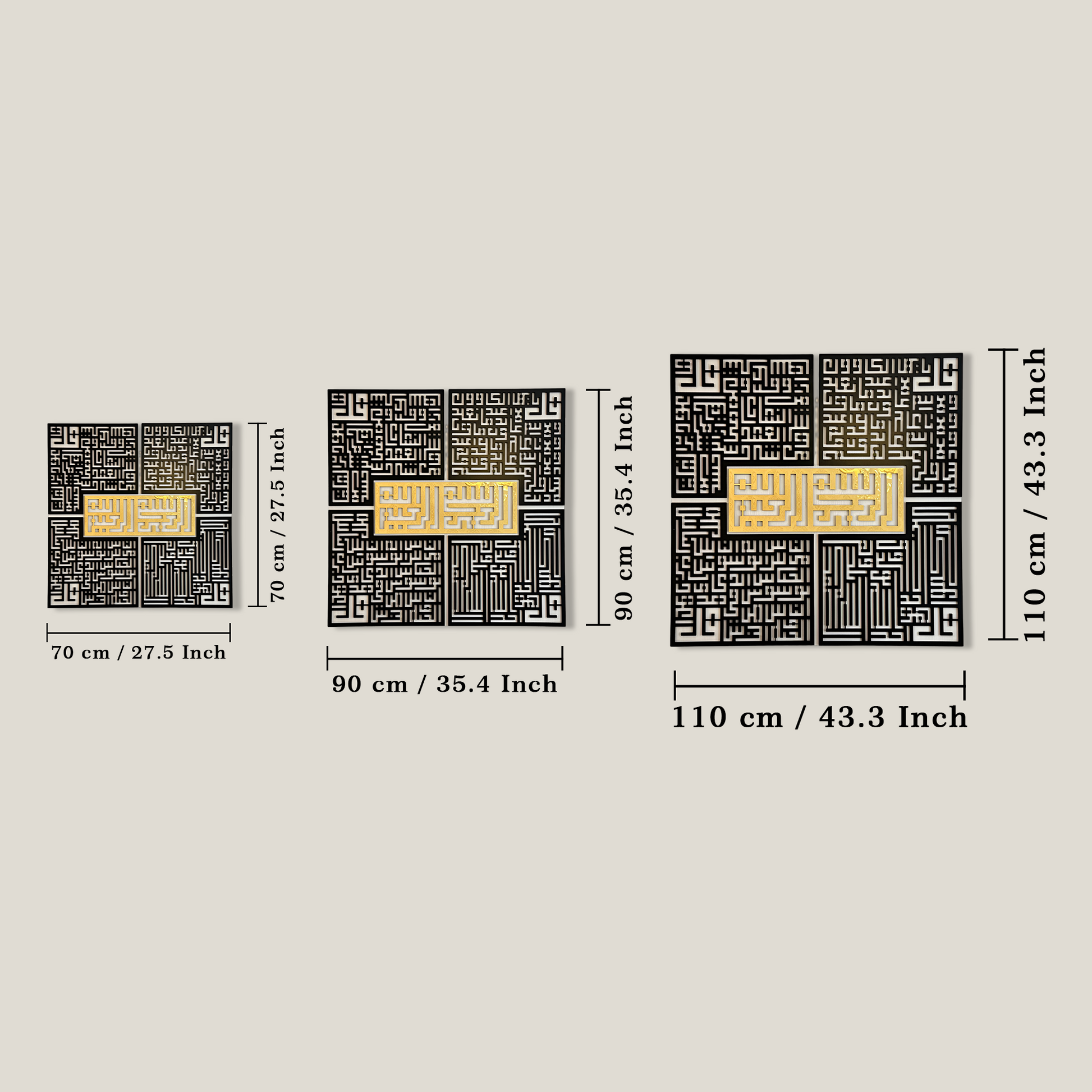 Surah Ikhlas, Kafirun, Falaq, Nas Kufic ACRYLIC/WOODEN Islamic Wall Art 4 Quls