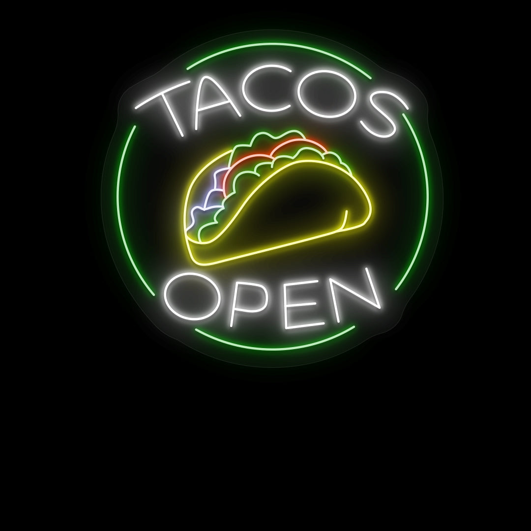 Tacos Open Circle Neon Sign | Light Up the Flavour, Round the Clock