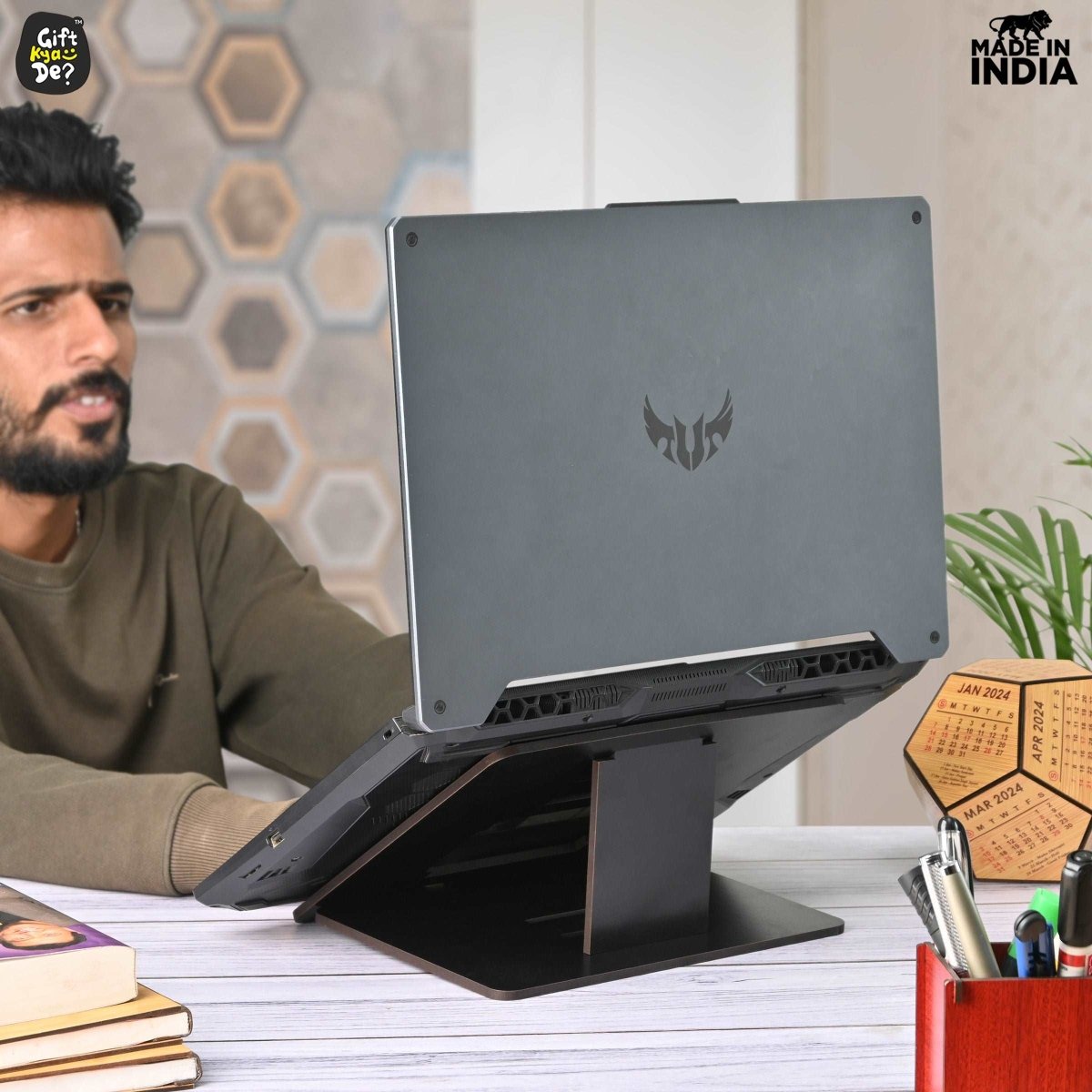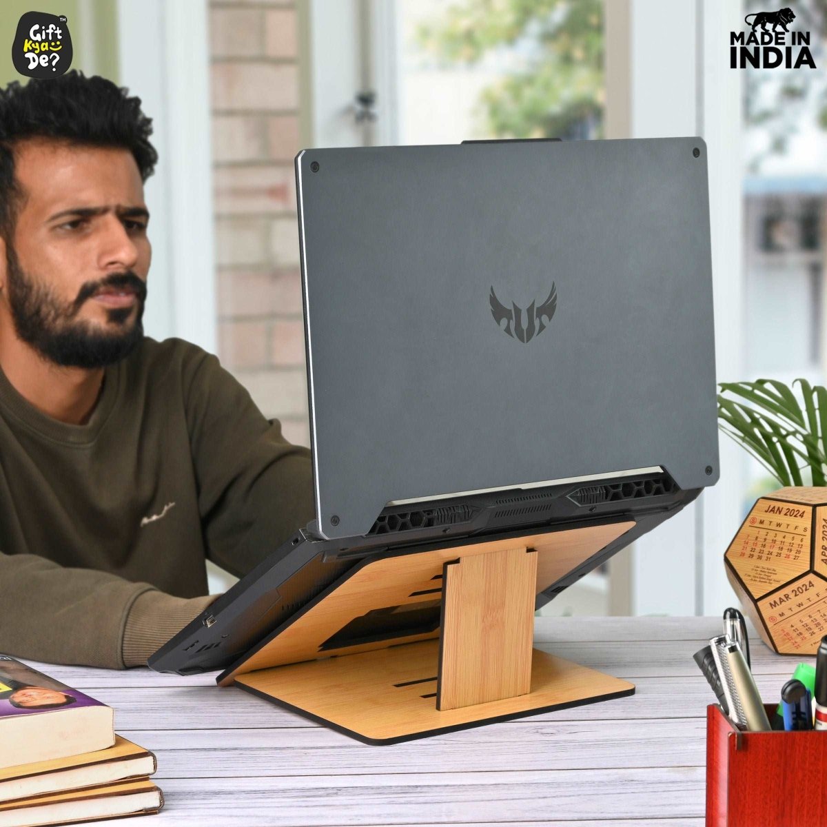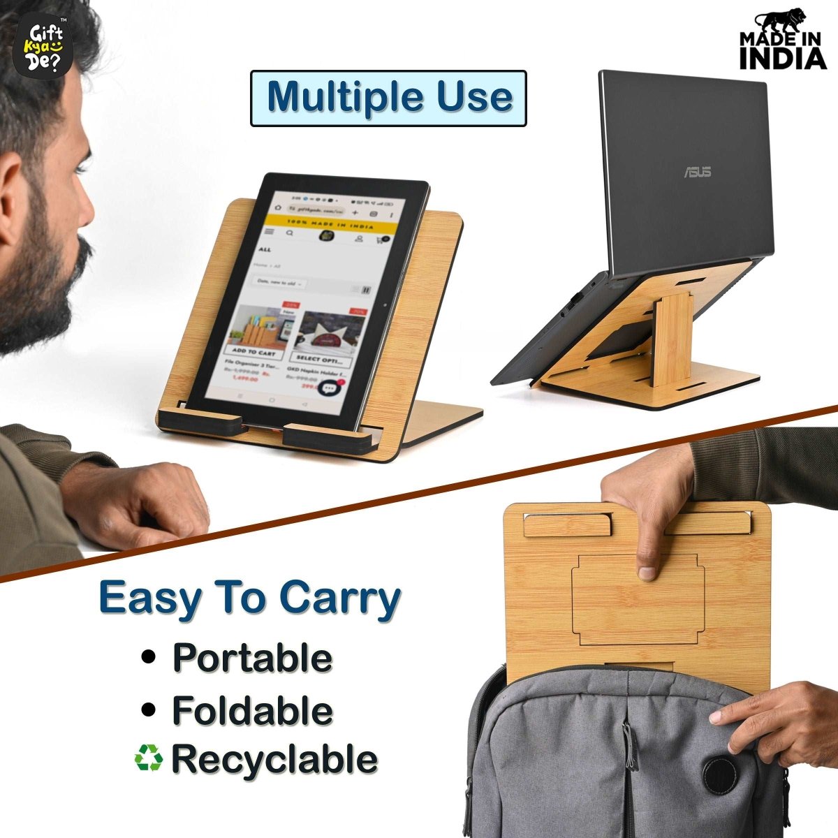 Wooden Foldable Portable Laptop Stand With 3 Level Adjustable Stand | Laptop Accessories | Gadget 2024