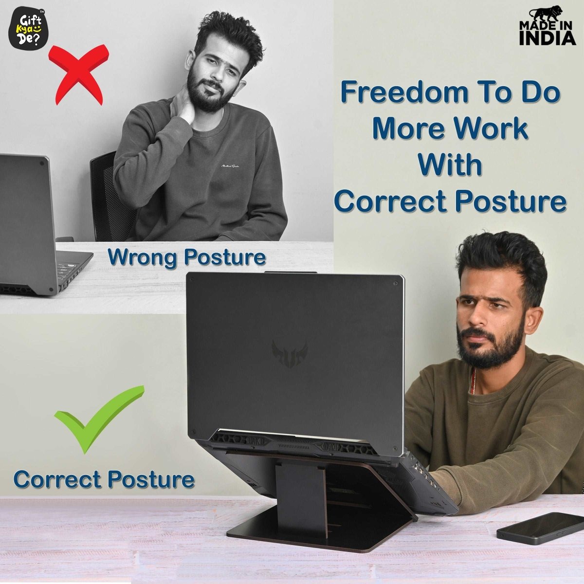 Comfortability : The laptop stands which we provide are super easy to use and are most comfortable. We can carry it anywhere and we can resume our job regardless of the surroundings we are in.