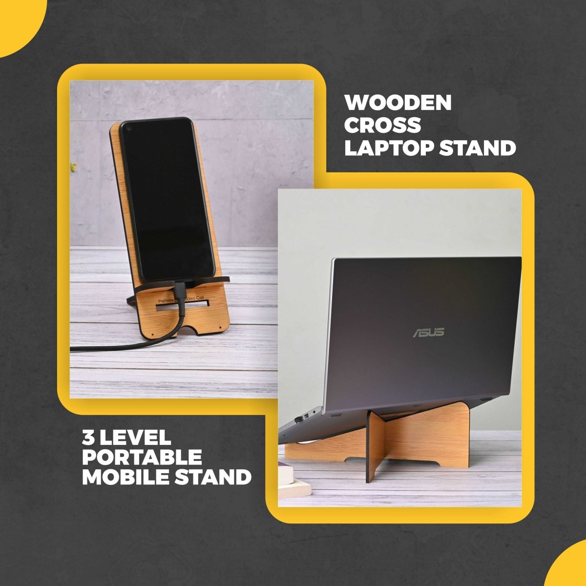 Cross Laptop Stand & Mobile Stand Combo | Laptop Accessories | Desk Accessories