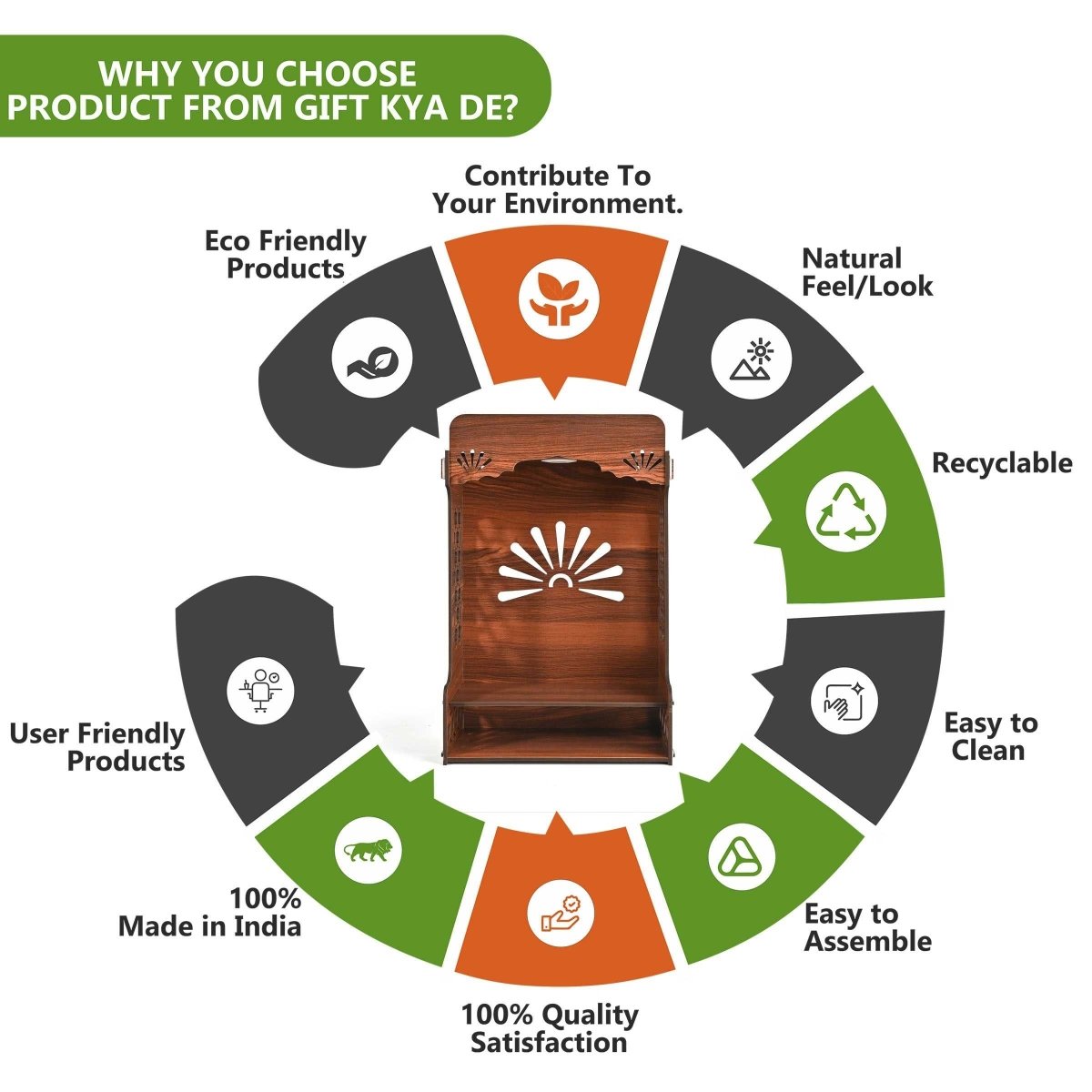 Wooden Temple For Home & Office | Premium 3D Cutwork Design | Mandir With LED Spot Light & Storage (DIY)